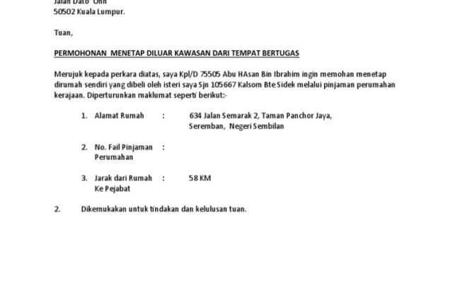 Contoh surat rayuan pertukaran tempat kerja . Contoh surat rasmi kerajaan malaysia.